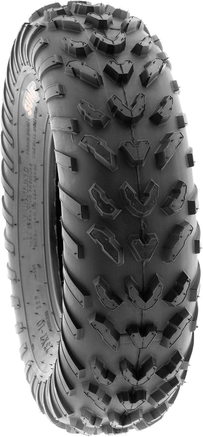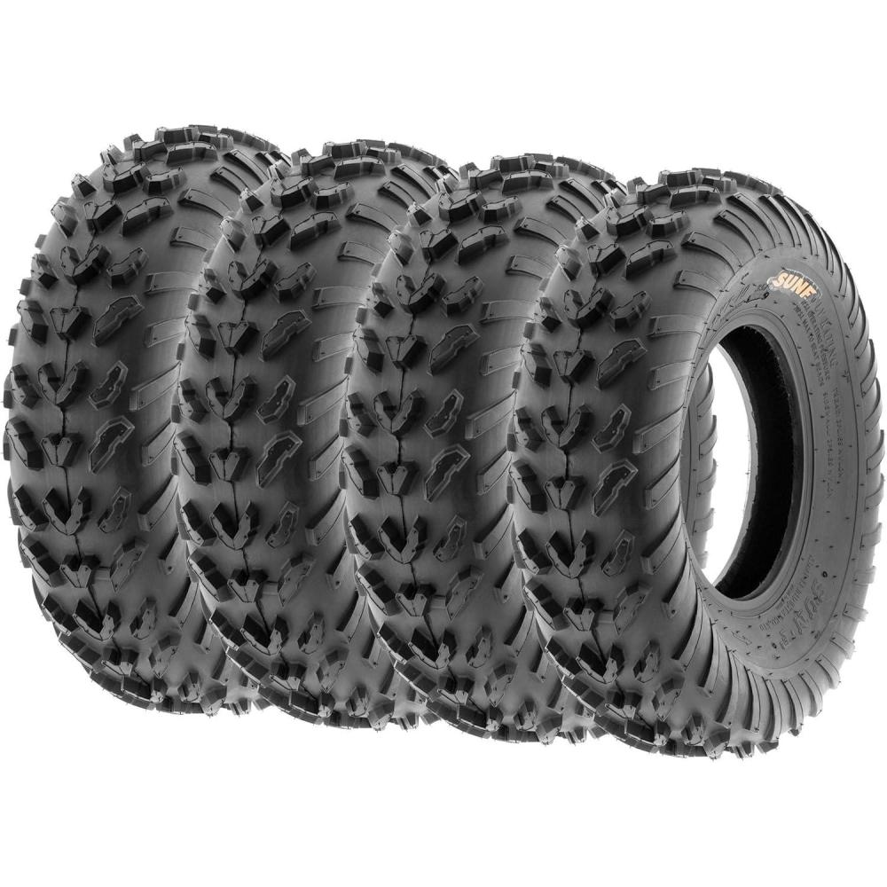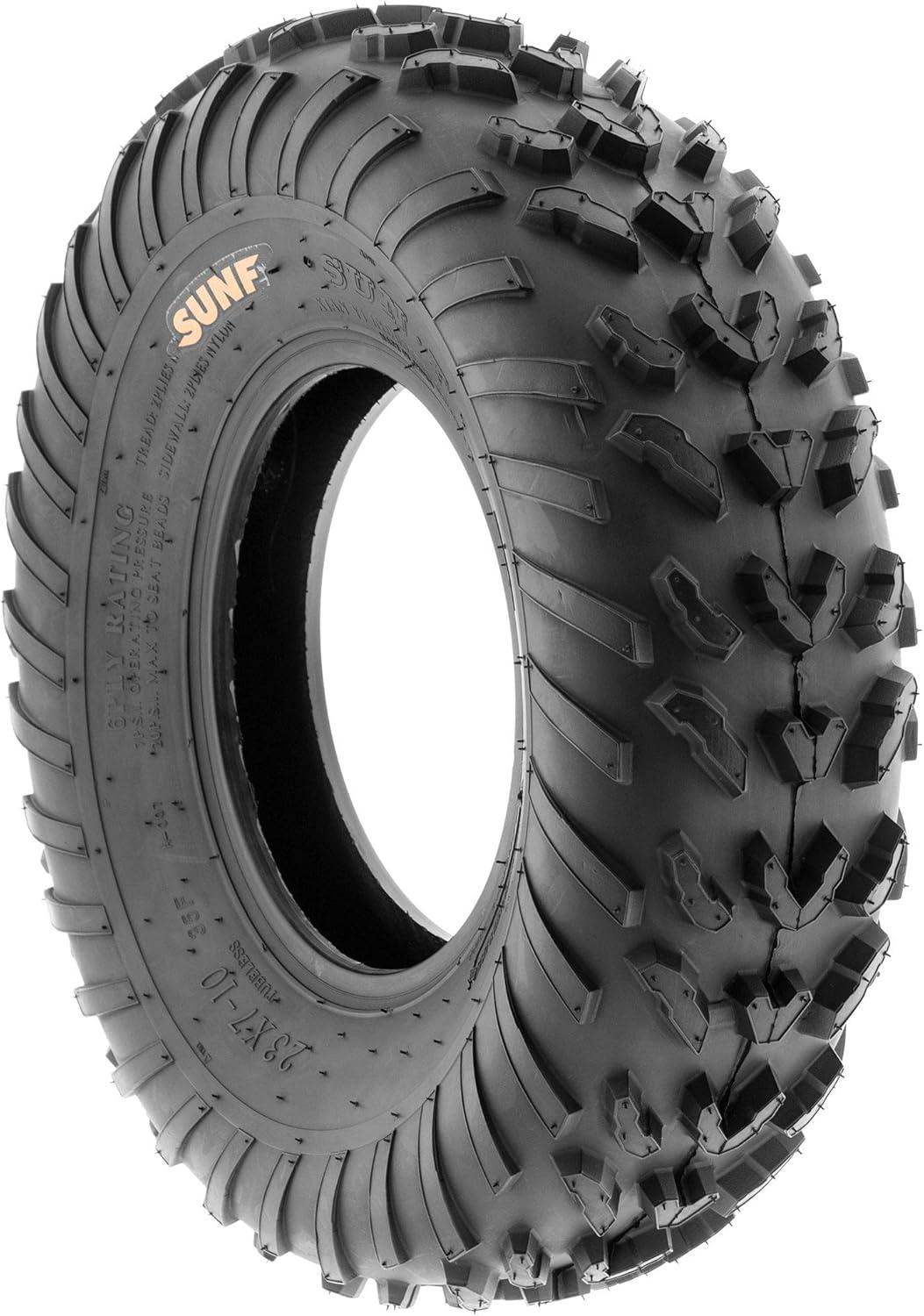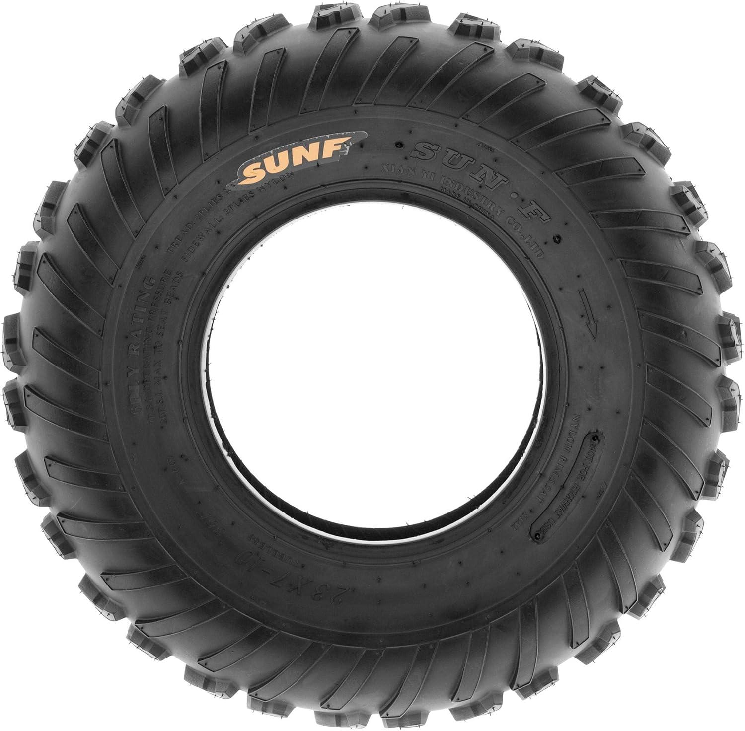 SunF Corporation has dedicated themselves to meeting their customer’s demands and needs. SunF develops and manufactures a wide variety of quality tires in the specialty market. Their line up includes ST trailer, lawn and garden, agriculture, golf cart, ATV Quad Motorcycle, UTV Side by Side, light truck & more! Tires can suit your Arctic Cat, Bombardier, Can-Am, Honda, Kawasaki, Polaris, John Deere, Suzuki off-road vehicle and more. Contact us with any questions you may have. The SunF TIRES is among the worlds most popular footprints. Its aggressive, non directional tread pattern features a radial like composition to maintain even braking and a smooth ride while providing maximum traction. General Specs Total Quantity: 4 Tire Model: A007/A006 Tire Type: Tubeless Tire Material: Rubber Tire Color: Black Front Specs Size: 23x7x10 QTY: 2 Rim Size: 10 x 5.5 Ply Rating: 4 Overall Diameter (in): 23 Side Wall (in): 7 Tread Depth (in): 0.33 (8.5mm) Max Load (lbs): 220LB Max PSI: 20 Rear Specs Size: 22x10x10 QTY: 2 Rim Size: 10 x 8.0 Ply Rating: 4 Overall Diameter (in): 22 Side Wall (in): 10 Tread Depth (in): 0.47 (12mm) Max Load (lbs): 265lb Max PSI: 20