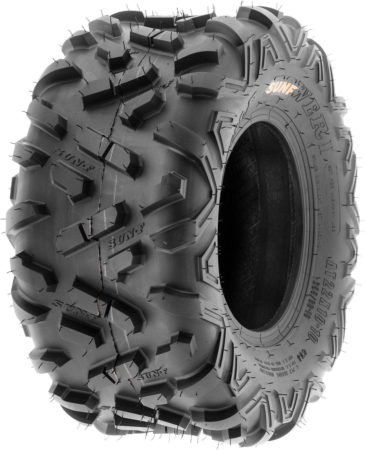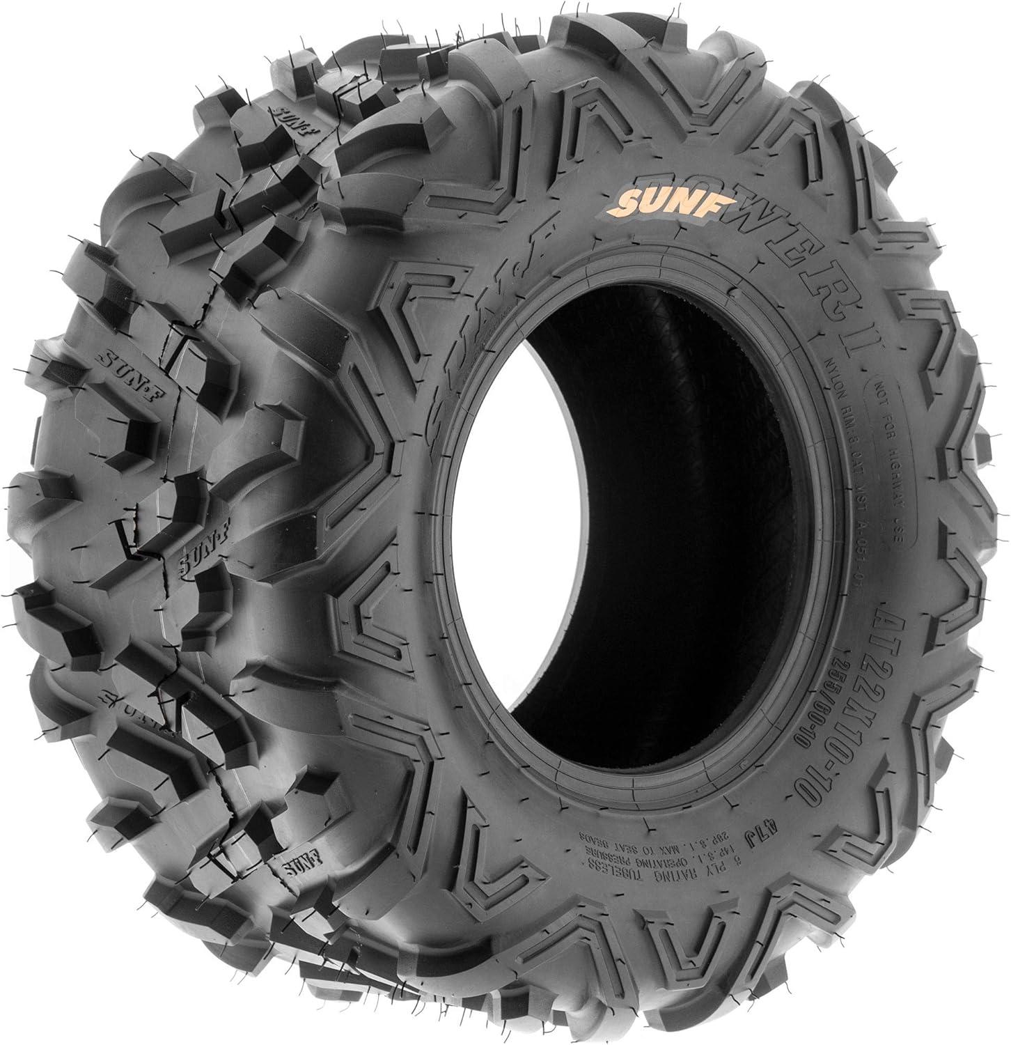 SunF Corporation has dedicated themselves to meeting their customer’s demands and needs. SunF develops and manufactures a wide variety of quality tires in the specialty market. Their line up includes ST trailer, lawn and garden, agriculture, golf cart, ATV Quad Motorcycle, UTV Side by Side, light truck & more!The SUNF A051 ATV & UTV tire showcases the specialized “Power II” non-directional tread pattern, meticulously designed for exceptional all-terrain recreational and racing performance, delivering reliable traction and stability.All-Terrain Recreational and Racing Mastery: Engineered to excel across diverse terrains, from recreational trails to racing tracks, the A051 tire offers consistent and dependable performance for ATV and UTV riders seeking versatile traction.Durable 6 Ply Construction: Built with a robust 6-ply construction, the A051 tire is designed for durability, effectively resisting punctures, cuts, and impacts to withstand the demands of recreational riding and racing conditions.Shoulder Traction Enhancement: Equipped with advanced shoulder traction technology, the A051 tire ensures superior grip during turns and challenging maneuvers on various terrains, enhancing off-road control for recreational and racing enthusiasts at an affordable price (compared to Bighorn 2.0)Sizes Ranging from 13 to 26 Inches: With sizes spanning from 13 to 26 inches, the SUNF A051 tire caters to a broad spectrum of ATV and UTV models, ensuring optimized traction and stability for various recreational and racing setups.Size 1: 18×9.5-8