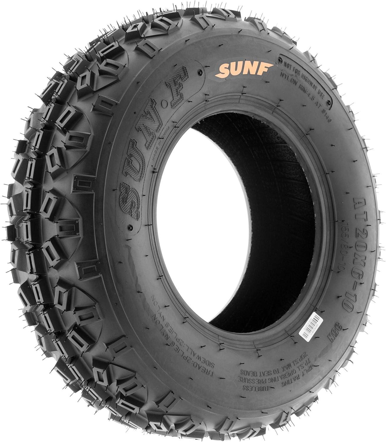 SunF Corporation has dedicated themselves to meeting their customer’s demands and needs. SunF develops and manufactures a wide variety of quality tires in the specialty market. Their line up includes ST trailer, lawn and garden, agriculture, golf cart, ATV Quad Motorcycle, UTV Side by Side, light truck & more!The SUNF A035 ATV tire features a specialized directional “Angled Square Knobby” tread pattern, meticulously designed for exceptional all-terrain and racing performance, providing reliable traction and stability.All-Terrain Racing Mastery: Engineered to excel across various terrains, from mud to sand and rough tracks, the A035 tire offers consistent and dependable performance for off-road racers seeking versatile traction.Durable 6 Ply Construction: Crafted with a robust 6-ply construction, the A035 tire is engineered for durability, effectively resisting punctures, cuts, and impacts to withstand the rigorous demands of racing and off-road conditions.Shoulder Traction Innovation: Equipped with advanced shoulder traction technology, the A035 tire ensures superior grip during high-speed turns and challenging maneuvers on diverse terrains, enhancing off-road control for racing enthusiasts.Sizes Ranging from 18 to 21 Inches: With sizes ranging from 18 to 21 inches, the SUNF A035 tire caters to a variety of ATV models and rider preferences, ensuring optimized traction and stability for various racing setups and performance requirements.Size 1: 20×6-10 | Size 2: 20×11-9