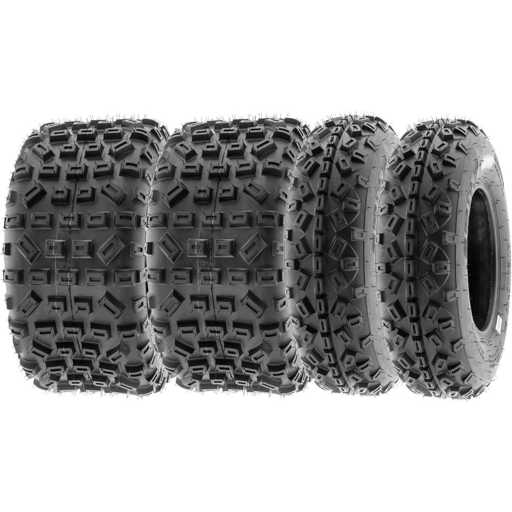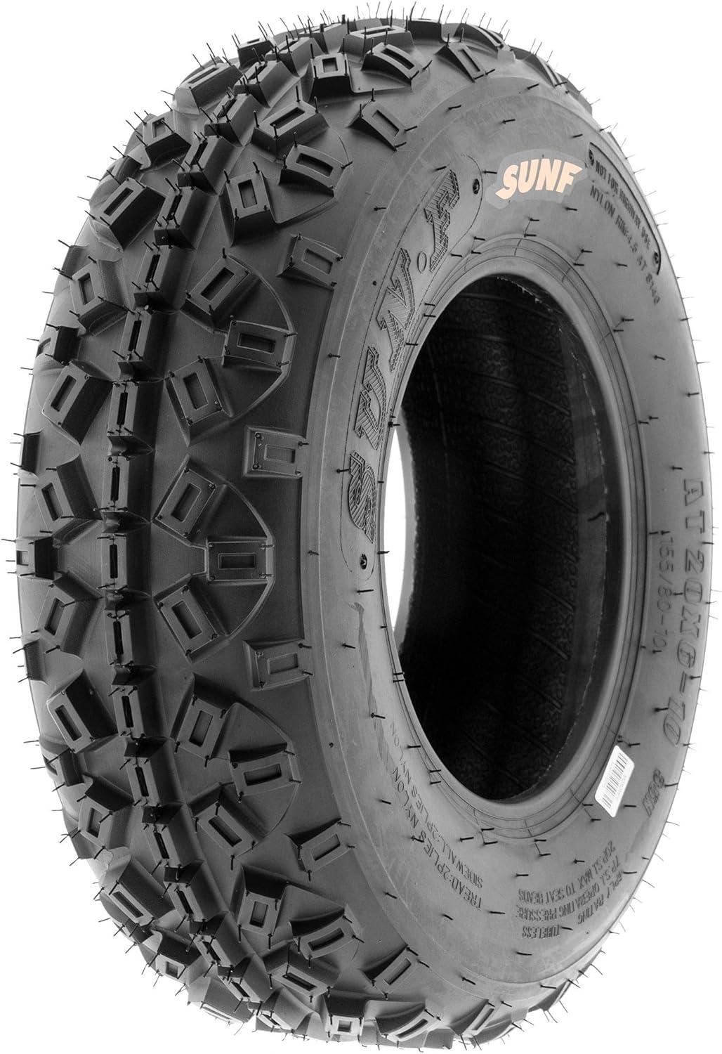SunF Corporation has dedicated themselves to meeting their customer’s demands and needs. SunF develops and manufactures a wide variety of quality tires in the specialty market. Their line up includes ST trailer, lawn and garden, agriculture, golf cart, ATV Quad Motorcycle, UTV Side by Side, light truck & more!The SUNF A035 ATV tire features a specialized directional “Angled Square Knobby” tread pattern, meticulously designed for exceptional all-terrain and racing performance, providing reliable traction and stability.All-Terrain Racing Mastery: Engineered to excel across various terrains, from mud to sand and rough tracks, the A035 tire offers consistent and dependable performance for off-road racers seeking versatile traction.Durable 6 Ply Construction: Crafted with a robust 6-ply construction, the A035 tire is engineered for durability, effectively resisting punctures, cuts, and impacts to withstand the rigorous demands of racing and off-road conditions.Shoulder Traction Innovation: Equipped with advanced shoulder traction technology, the A035 tire ensures superior grip during high-speed turns and challenging maneuvers on diverse terrains, enhancing off-road control for racing enthusiasts.Sizes Ranging from 18 to 21 Inches: With sizes ranging from 18 to 21 inches, the SUNF A035 tire caters to a variety of ATV models and rider preferences, ensuring optimized traction and stability for various racing setups and performance requirements.Size 1: 21×6-10 | Size 2: 20×11-9