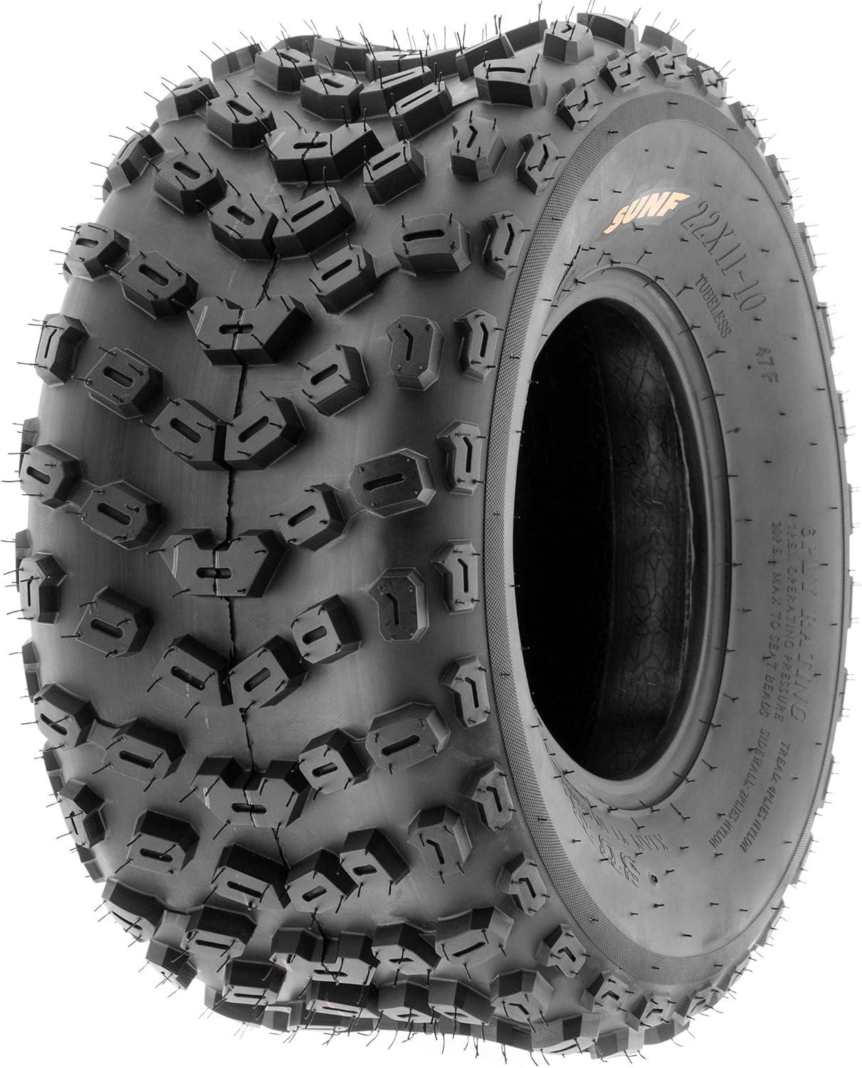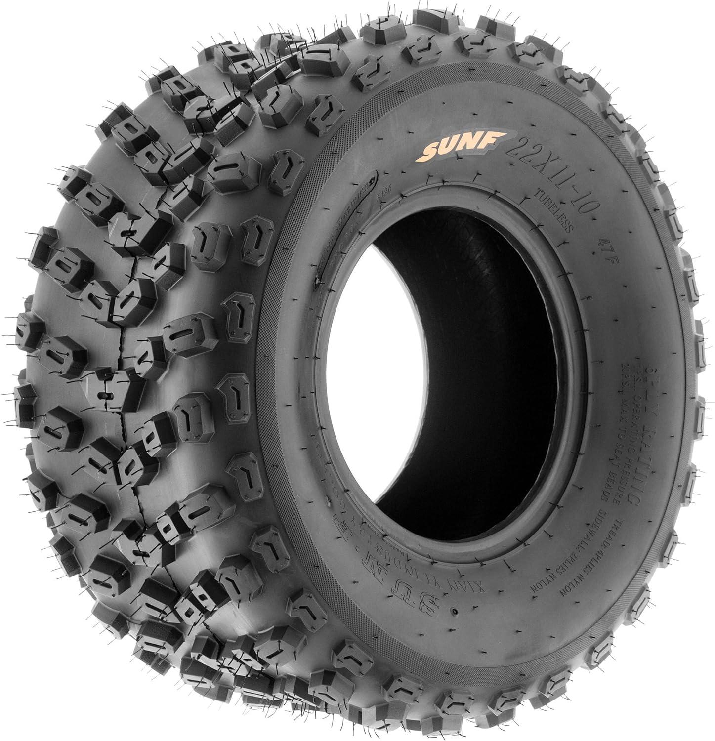 SunF Corporation has dedicated themselves to meeting their customer’s demands and needs. SunF develops and manufactures a wide variety of quality tires in the specialty market. Their line up includes ST trailer, lawn and garden, agriculture, golf cart, ATV Quad Motorcycle, UTV Side by Side, light truck & more!The SUNF A005 ATV tire boasts an advanced directional “V” tread pattern, optimizing all-terrain performance by delivering outstanding traction and stability.All-Terrain Versatility: Designed to excel across a variety of terrains, including mud, sand, and rocky surfaces, the A005 tire provides reliable and consistent performance for off-road enthusiasts.Robust 6 Ply Construction: Built with a sturdy 6-ply construction, the A005 tire is engineered to withstand tough conditions, offering heightened durability and resilience against punctures, cuts, and impacts.Shoulder Traction Enhancement: Featuring innovative shoulder traction technology, the A005 tire ensures superior grip during turns and challenging maneuvers, making it an ideal choice for diverse terrains.Available Size Options: Offered in 18 and 22 inches, the SUNF A005 tire provides a range of sizes to accommodate different ATV models and rider preferences, ensuring a tailored fit for various vehicle setups and needs.Size 1: 22×11-10