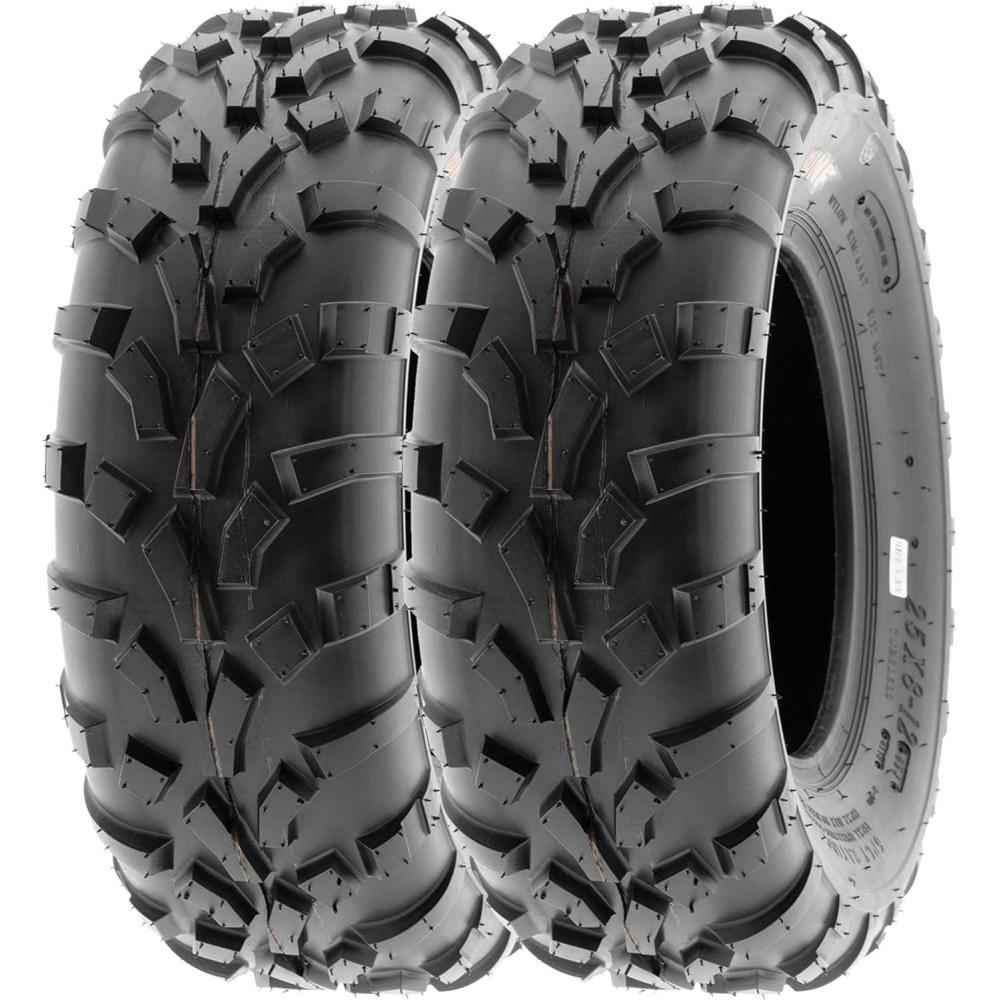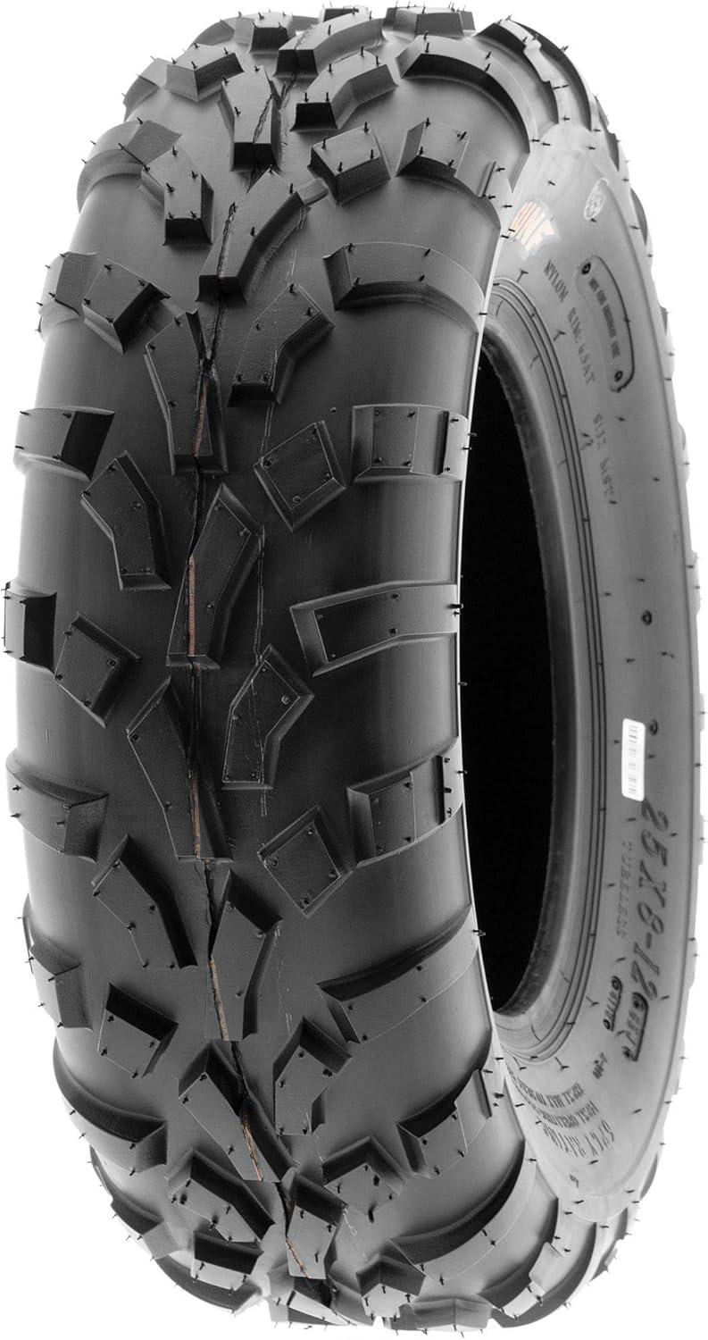 SunF Corporation has dedicated themselves to meeting their customer’s demands and needs. SunF develops and manufactures a wide variety of quality tires in the specialty market. Their line up includes ST trailer, lawn and garden, agriculture, golf cart, ATV Quad Motorcycle, UTV Side by Side, light truck & more!The SUNF A010 ATV tire boasts a specialized directional “V” tread pattern, enhancing all-terrain performance by providing superior traction and stability.Versatile All-Terrain Capability: Designed to excel across different terrains such as mud, sand, and rocky surfaces, the A010 tire offers consistent and dependable performance for riders seeking versatility.Durable 6 Ply Construction: Constructed with a sturdy 6-ply build, the A010 tire is engineered for durability, effectively resisting punctures, cuts, and impacts to tackle the demands of rugged off-road conditions.Shoulder Traction Innovation: Equipped with advanced shoulder traction technology, the A010 tire ensures optimal grip during turns and challenging maneuvers on various terrains, making it a reliable choice for off-road enthusiasts.25-Inch Size Option: With a size option of 25 inches, the SUNF A010 tire provides a specific fit for ATV models, catering to riders who require enhanced traction and stability across diverse terrains.Size 1: 25×10-12