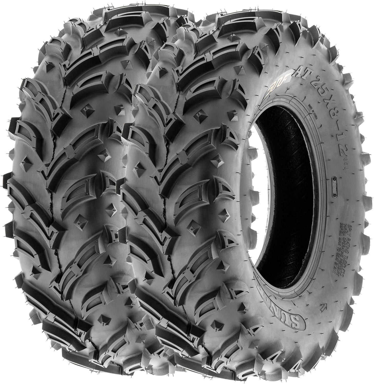 SunF Corporation has dedicated themselves to meeting their customer’s demands and needs. SunF develops and manufactures a wide variety of quality tires in the specialty market. Their line up includes ST trailer, lawn and garden, agriculture, golf cart, ATV Quad Motorcycle, UTV Side by Side, light truck & more!The SUNF A024 ATV tire features a specialized directional “V angled” tread pattern, optimized for exceptional all-terrain performance, providing reliable traction and stability.All-Terrain Excellence: Engineered to excel across various terrains, including mud, sand, and rocky surfaces, the A024 tire offers consistent and dependable performance for off-road enthusiasts seeking versatile traction.Durable 6 Ply Construction: Crafted with a robust 6-ply construction, the A024 tire is designed for durability, effectively resisting punctures, cuts, and impacts to tackle rugged off-road conditions with confidence.Shoulder Traction Innovation: Equipped with advanced shoulder traction technology, the A024 tire ensures superior grip during turns and challenging maneuvers on diverse terrains, enhancing off-road control.Wide Size Range: Available in sizes ranging from 22 to 25 inches, the SUNF A024 tire accommodates a variety of ATV models and rider preferences, ensuring a customized fit for various vehicle setups and requirements.Size 1: 25×8-12 | Size 2: 25×10-12