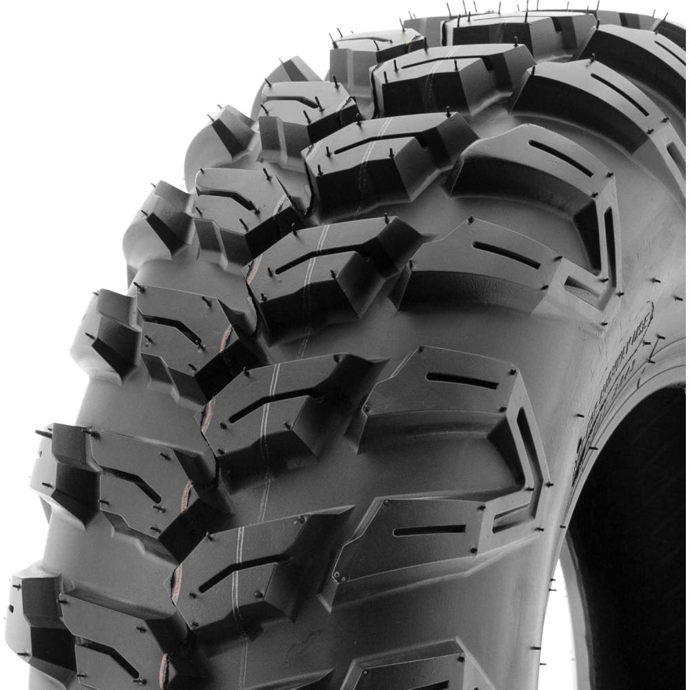 SunF Corporation has dedicated themselves to meeting their customer’s demands and needs. SunF develops and manufactures a wide variety of quality tires in the specialty market. Their line up includes ST trailer, lawn and garden, agriculture, golf cart, ATV Quad Motorcycle, UTV Side by Side, light truck & more!The SUNF A043 ATV, UTV & SxS tire features a specialized directional tread pattern, meticulously crafted for exceptional all-terrain recreational and racing performance, delivering reliable traction and stability.All-Terrain Recreational and Racing Excellence: Engineered to excel across diverse terrains, from recreational trails to racing tracks, the A043 tire offers consistent and dependable performance for ATV, UTV, and SxS riders seeking versatile traction.Durable 6 Ply Construction: Built with a robust 6-ply construction, the A043 tire is designed for durability, effectively resisting punctures, cuts, and impacts to withstand the demands of recreational riding and racing conditions.Shoulder Traction Enhancement: Equipped with advanced shoulder traction technology, the A043 tire ensures superior grip during high-speed turns and challenging maneuvers on various terrains, enhancing off-road control for recreational and racing enthusiasts.Sizes Ranging from 25 to 27 Inches: With sizes spanning from 25 to 27 inches, the SUNF A043 tire caters to a broad range of ATV, UTV, and SxS models, ensuring optimized traction and stability for various recreational and racing setups.Size 1: 25x8R12
