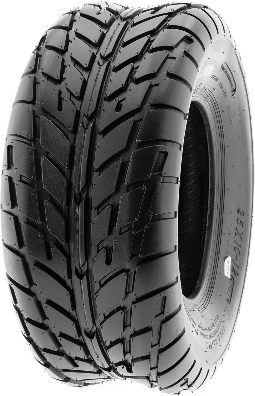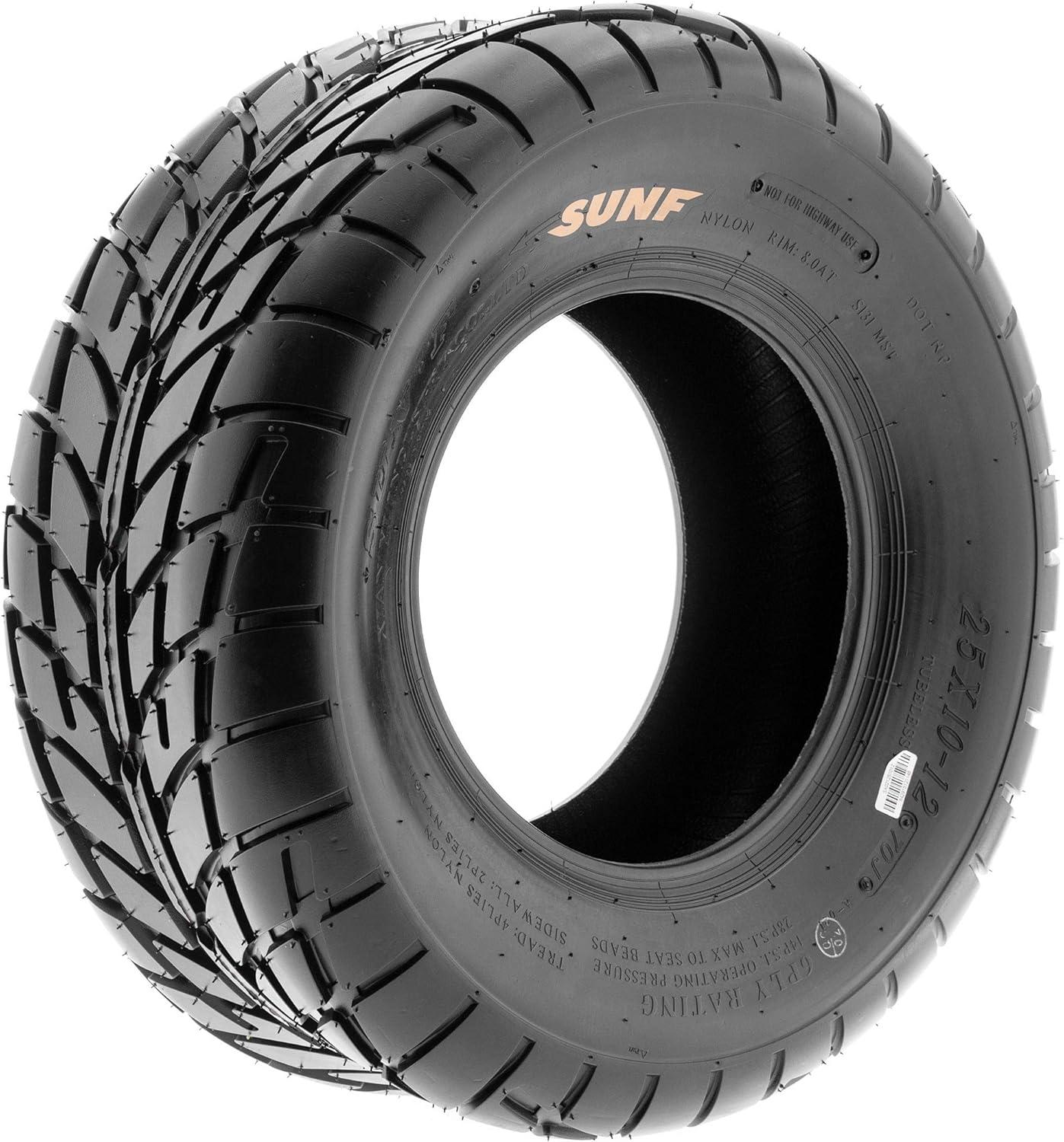 SunF Corporation has dedicated themselves to meeting their customer’s demands and needs. SunF develops and manufactures a wide variety of quality tires in the specialty market. Their line up includes ST trailer, lawn and garden, agriculture, golf cart, ATV Quad Motorcycle, UTV Side by Side, light truck & more!The SUNF A021 ATV tire boasts a specialized directional “street-like” tread pattern, optimized for exceptional performance on paved or hard-pack terrain, providing reliable traction and stability.All-Purpose Versatility: Engineered to perform seamlessly on paved trail roads and compacted trails, the A021 tire delivers consistent and dependable performance for ATV enthusiasts seeking versatility.Durable 6 Ply Construction: Built with a robust 6-ply construction, the A021 tire is engineered for durability, ensuring it can withstand the challenges of paved or hard-pack terrain with ease.Paved and Hard-Pack Terrain: Designed to excel on non-highway roads and hard surfaces, the A021 tire offers superior grip and control for riders seeking a smooth and stable ride in urban or outdoor environments.Wide Size Range: Available in sizes ranging from 13 to 26 inches, the SUNF A021 tire accommodates a broad spectrum of ATV models and rider preferences, ensuring a tailored fit for various vehicle setups and requirements.Size 1: 26×8-14