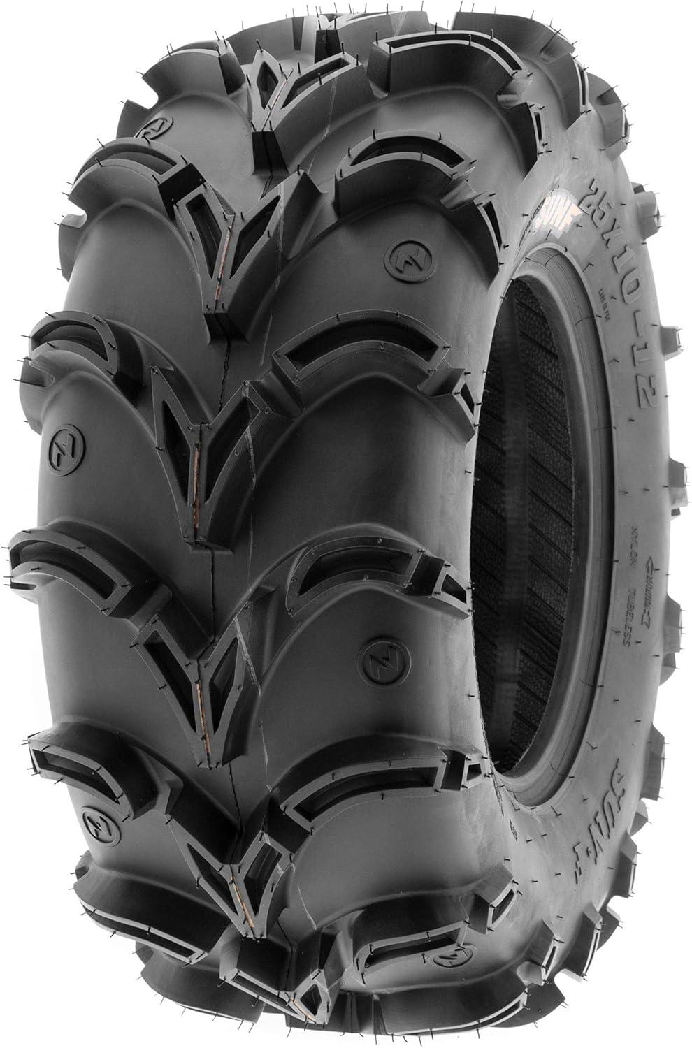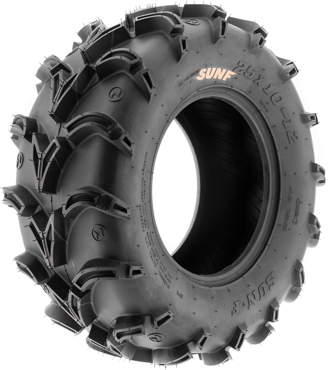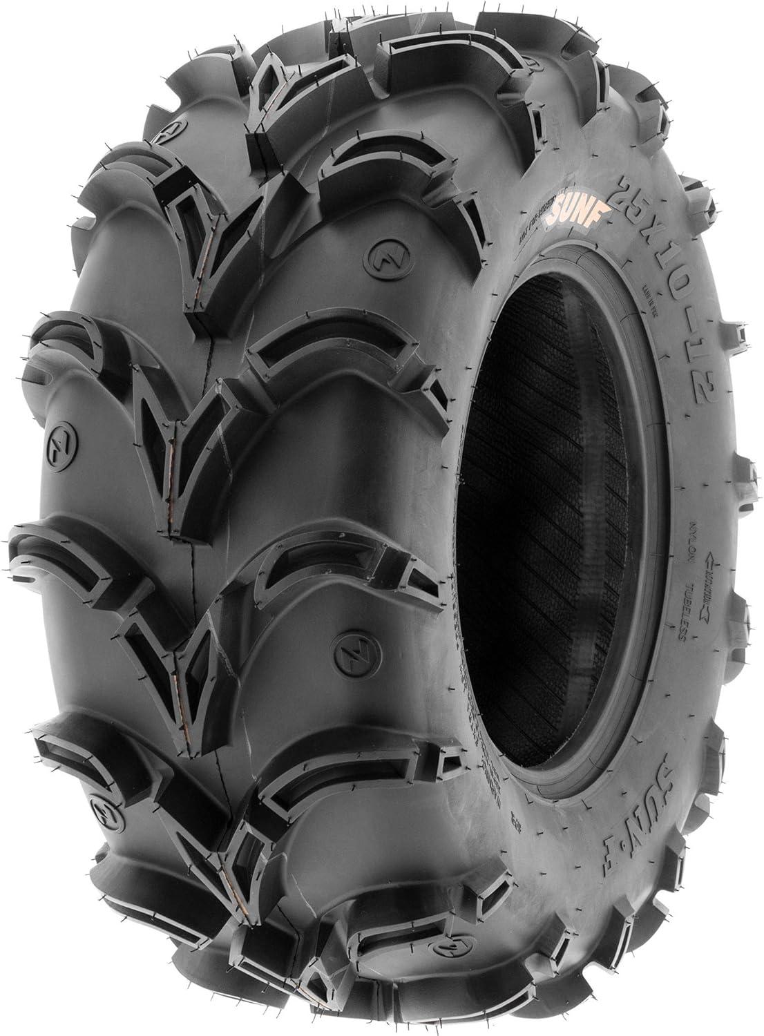 SunF Corporation has dedicated themselves to meeting their customer’s demands and needs. SunF develops and manufactures a wide variety of quality tires in the specialty market. Their line up includes ST trailer, lawn and garden, agriculture, golf cart, ATV Quad Motorcycle, UTV Side by Side, light truck & more!The SUNF A050 UTV & SxS tire features a specialized directional tread pattern, meticulously designed for exceptional all-terrain recreational and racing performance, with a particular emphasis on loose dirt and mud terrains, delivering reliable traction and stability.Loose Dirt and Mud Expertise: Engineered to excel on loose dirt and mud terrains, the A050 tire offers consistent and dependable performance for UTV and SxS riders seeking optimal traction in these demanding conditions.Durable 6 Ply Construction: Crafted with a robust 6-ply construction, the A050 tire is designed for durability, effectively resisting punctures, cuts, and impacts to withstand the rigors of recreational riding and racing in various environments.Shoulder Traction Innovation: Equipped with advanced shoulder traction technology, the A050 tire ensures superior grip during turns and challenging maneuvers on various terrains, enhancing off-road control for recreational and racing enthusiasts.Sizes Ranging from 25 to 28 Inches: With sizes spanning from 25 to 28 inches, the SUNF A050 tire caters to a variety of UTV and SxS models, ensuring optimized traction and stability for various recreational and racing setups on loose dirt and mud terrains.Size 1: 27×11-14